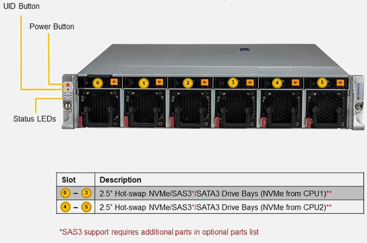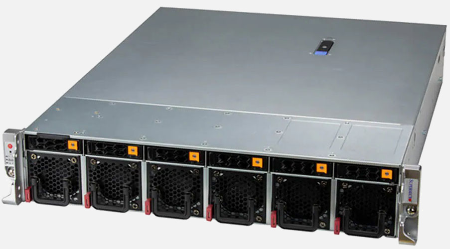 Dual 3rd Gen Intel Xeon Scalable Processors, Supports Up to 3 dual-width GPU cards, Redundant 2000W Power Supply. 6x 2.5" NVMe/SATA hot swappable drive bays.