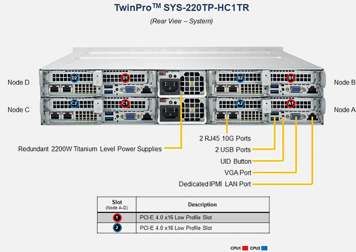 The Supermicro Twin SuperServer SYS-220TP-HC1TR | SYS-220TP-HC1TR boasts 8 PCI-Express slots for expandability, and as with all of our servers it can be fully customised online