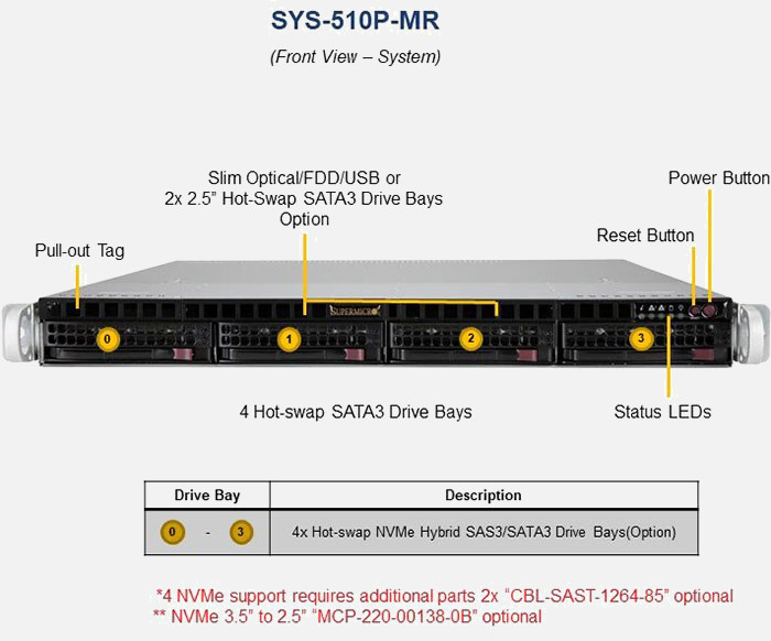 The Supermicro UP SuperServer SYS-510P-MR | SYS-510P-MR features hot-swap hard drives, giving you more flexibility and allowing you to remove drives without having to shut down the system.