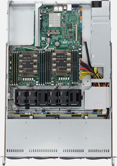 This system is capable of supporting up to 12 DIMMS per CPU. That’s a significant advancement on the previous limit, which was 9 DIMMS per CPU.