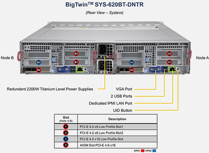 The Supermicro BigTwin SuperServer SYS-620BT-DNTR | SYS-620BT-DNTR boasts 6 PCI-Express slots for expandability, and as with all of our servers it can be fully customised online