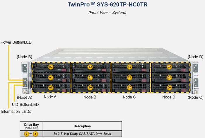 The Supermicro Twin SuperServer SYS-620TP-HC0TR | SYS-620TP-HC0TR features hot-swap hard drives, giving you more flexibility and allowing you to remove drives without having to shut down the system.