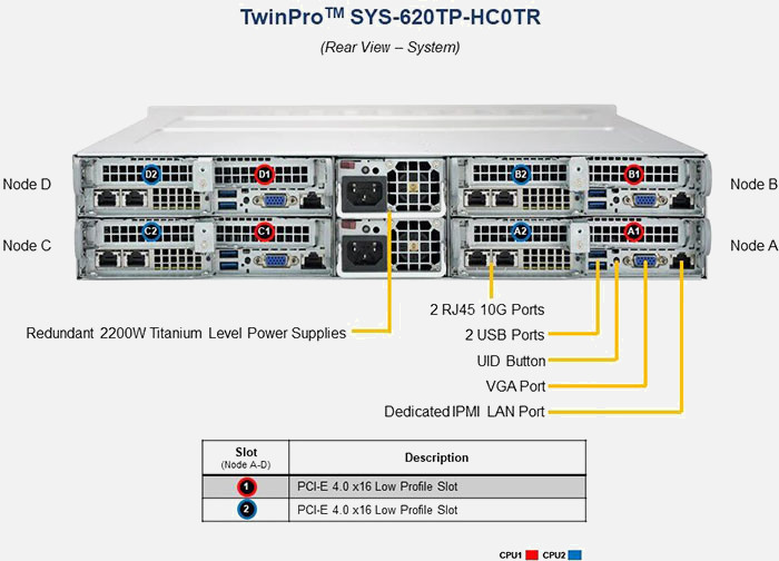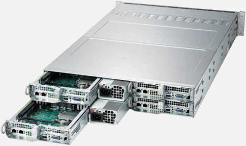 4 node solution optimised for HPC, hyper-converged infrastructure and big data. 2x PCI-E 4.0 x16 and 1x PCI-E 4.0 x8 slots per node. Redundant power.