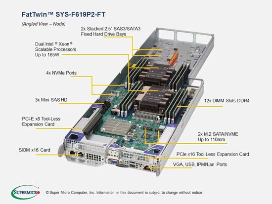 The Supermicro SYS-F619P2-FT SuperServer | F619P2-FT supports the Intel Intel Xeon Scalable Processors 2nd Generation family in a high-density 4U form-factor. These SuperServers are ideal for network infrastructure, front-end enterprise, and minimal-downtime cluster server systems.