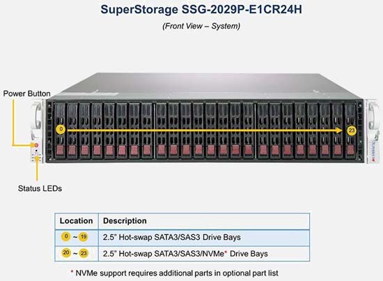 Configure the Supermicro SuperStorage 2029P-E1CR24H | SSG-2029P-E1CR24H with 3.5" drives. These drives are more cost-effective, offer a larger storage capacity and offer more flexibility.