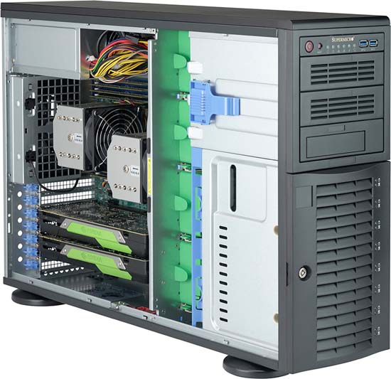 The Supermicro SuperWorkstation 7049A-T features hot-swap hard drives, giving you more flexibility and allowing you to remove drives without having to shut down the system.