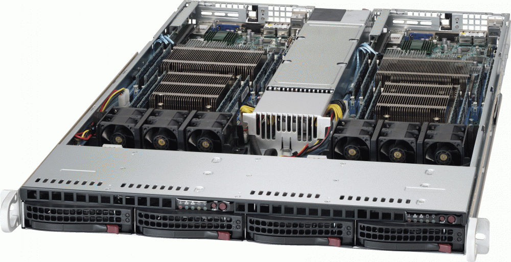 This server was designed to increase computing density while reducing cost, as well space and energy requirements. This 1U Twin supports Intel Xeon Scalable processors.