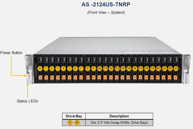 The Supermicro A+ Server 2124US-TNRP | AS-2124US-TNRP features hot-swap hard drives, giving you more flexibility and allowing you to remove drives without having to shut down the system.