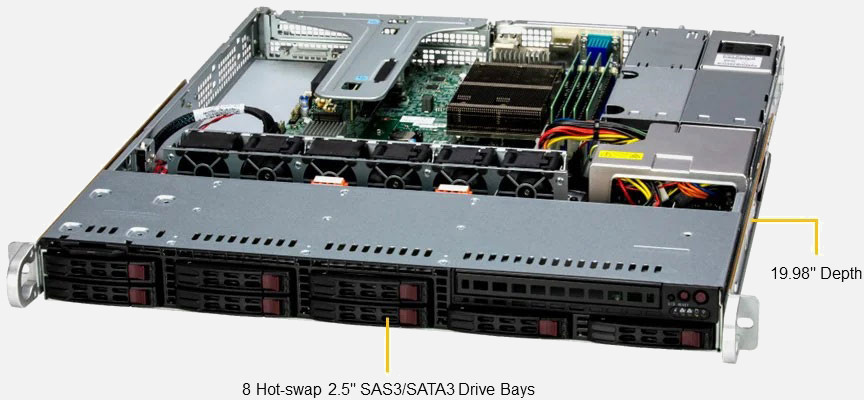 Single Intel Xeon E-2400 series Processor. Ideal for Web/Hosting Application, Database Processing and Storage. 2x PCI-E 3.0 x8 Slot. 600W Platinum Power Supply, 8x 2.5" SATA/SAS drives