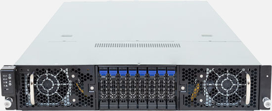 Dual Intel Xeon 6 6900 Series processors, dual 10Gb/s LAN ports, redundant power supply, 8x 2.5" SATA/SAS hot-swappable bays.