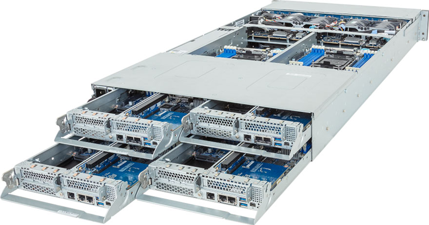 The CyberServe Xeon SP2-208G Quad Node G6 boasts high density storage and ultimate energy efficiency, catering for up to 8x High-Performance 2.5" SSD or Hard Drives