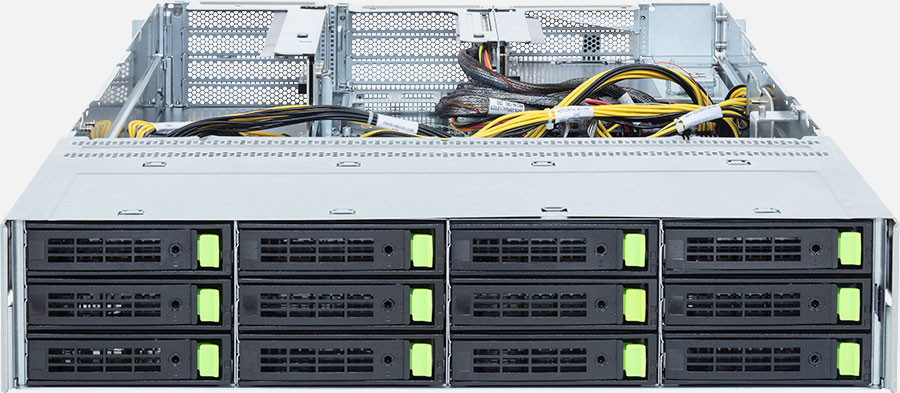 This system can be configured with SATA drives for cost-effective 12gb/s storage.
