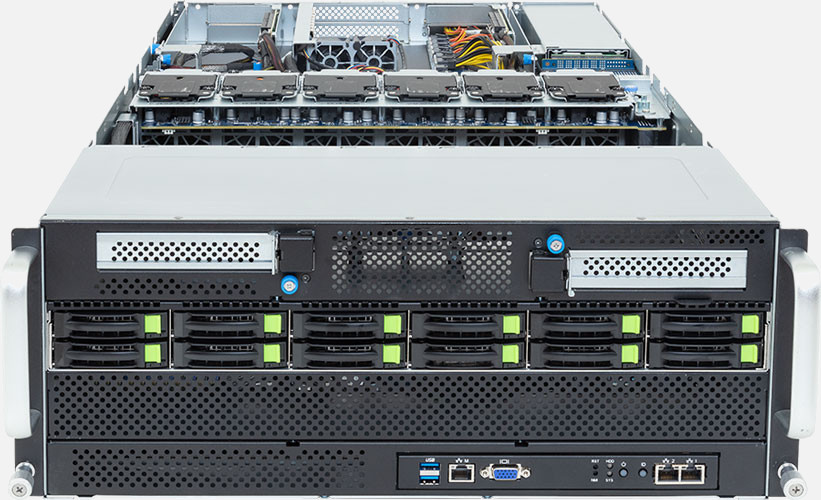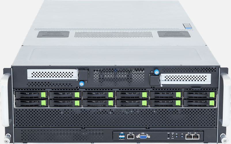 Dual Intel Xeon 6 Series processors, Supports 8x Dual slot Gen5 GPUs, dual 10Gb/s LAN ports, redundant power supply, 12x 2.5" NVMe/SATA/SAS & 4x SATA/SAS hot-swappable bays.