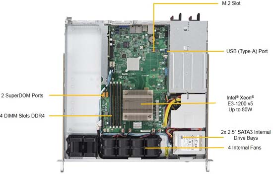 Intel Xeon E3 v6 Series Processor, 1U Server, 2x Fixed Drive Bays, Redundant Power Suppy